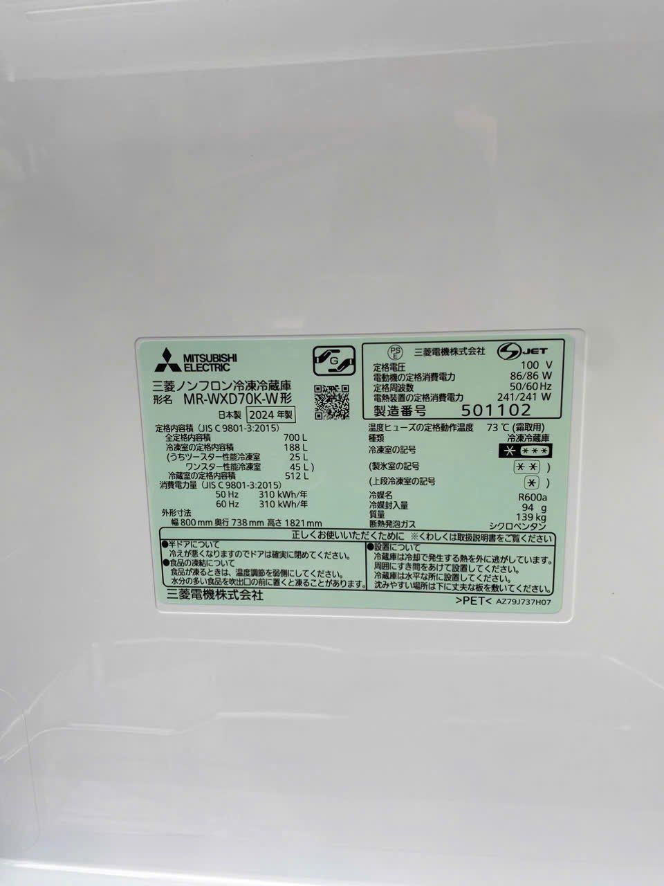 Thông số kỹ thuật của tủ lạnh Mitsubishi MR-WXD70K: